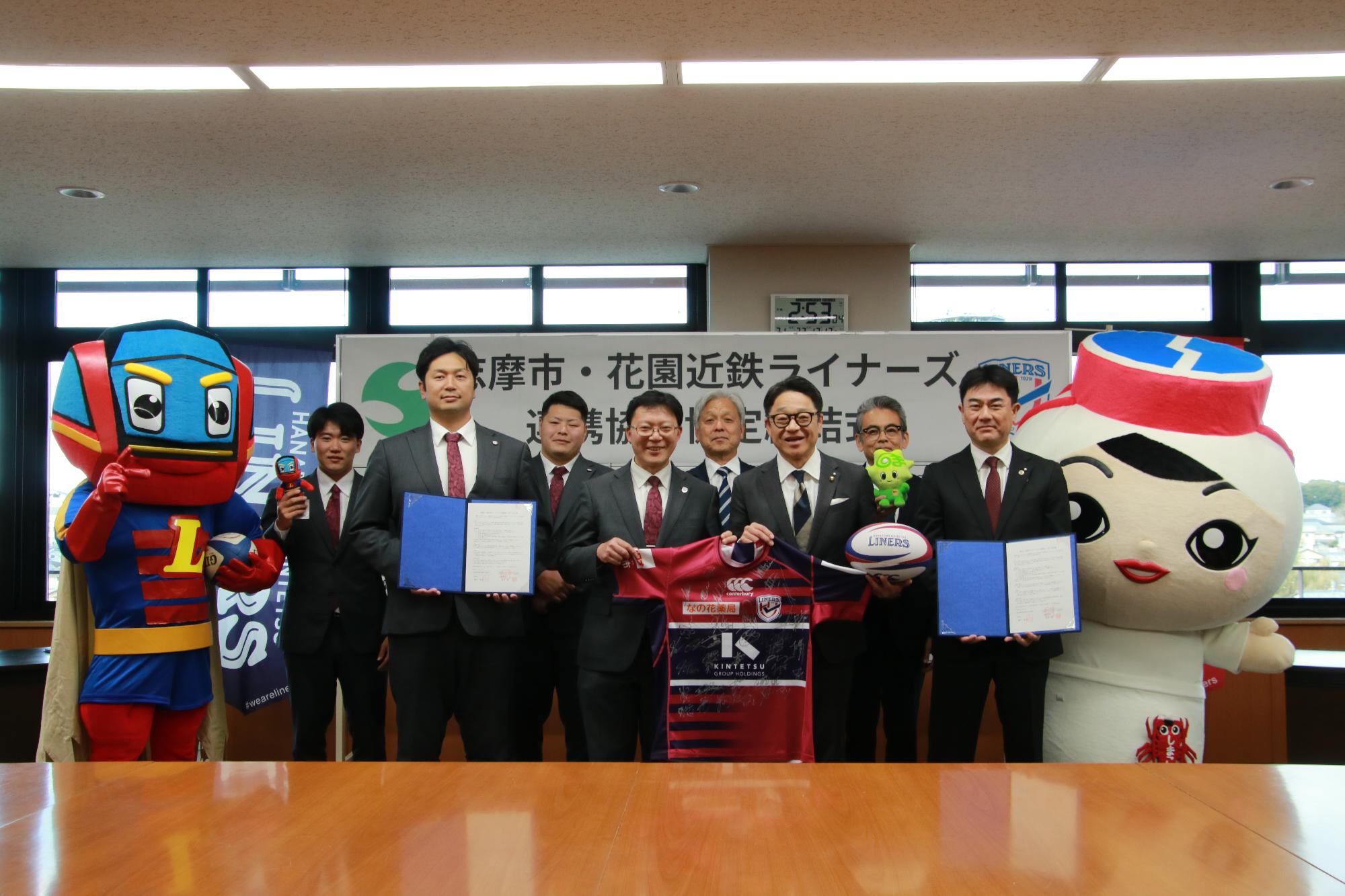 12月12日(金曜日)、ラグビー・リーグワン2部の「花園近鉄ライナーズ」との連携協力に関する協定締結式が行われました 。