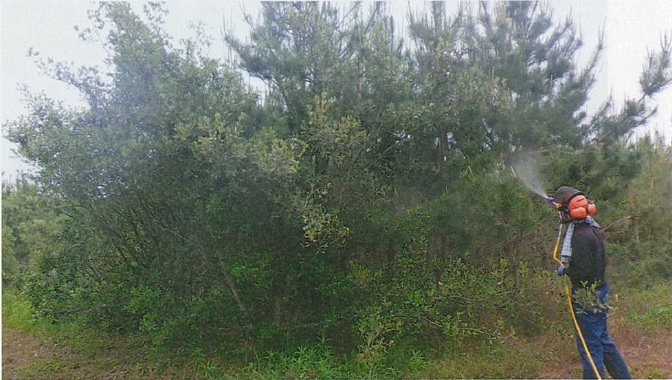 松枯れを防止するための薬剤の地上散布および樹幹注入を行いました。また、森林病害虫被害の防止のため、枯松の伐倒処理を行いました。