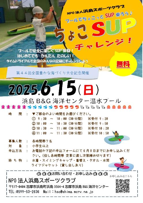 プールでちょこっとSUPに乗ろう「ちょこSUPチャレンジ!」の事前予約を受け付けます