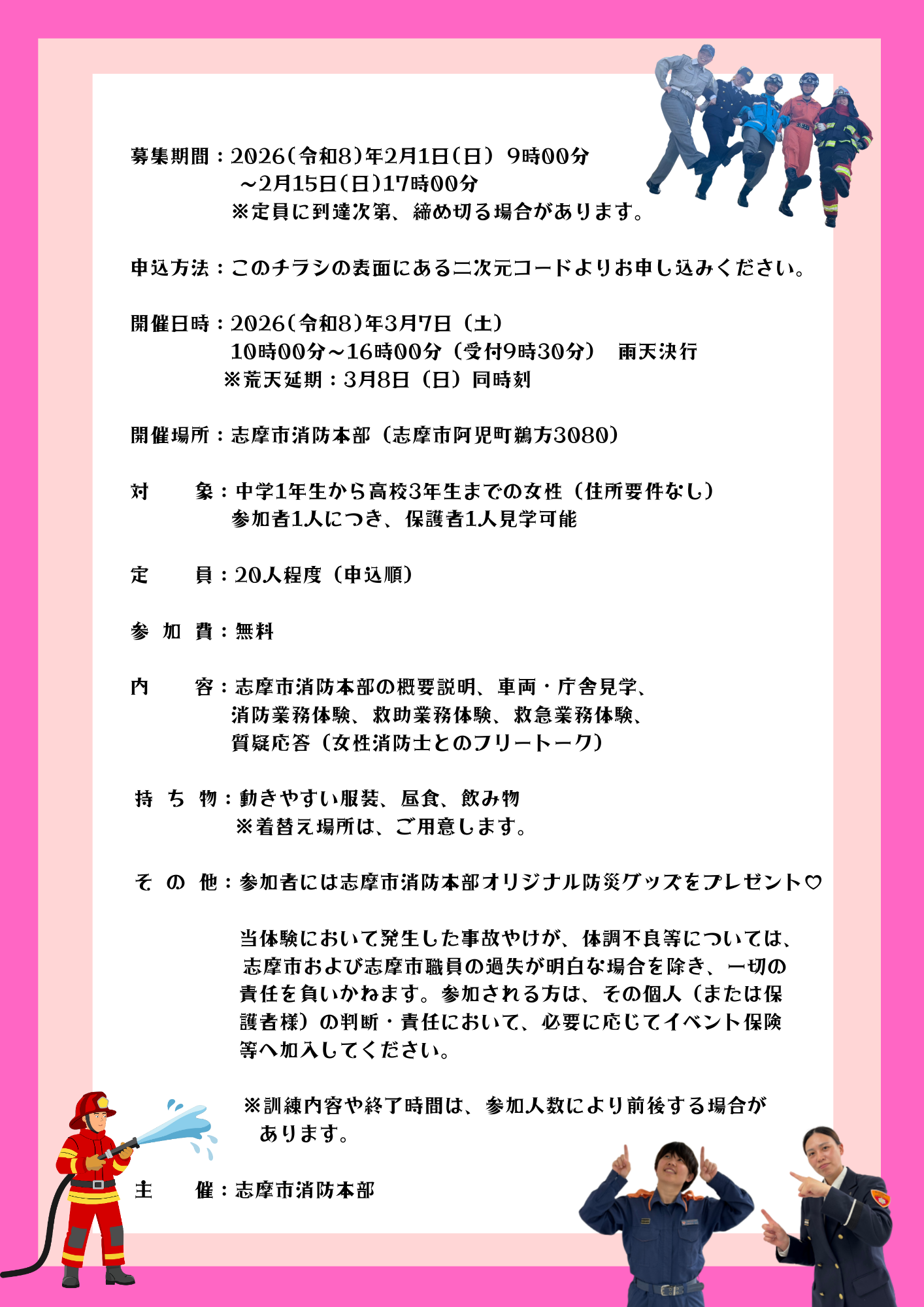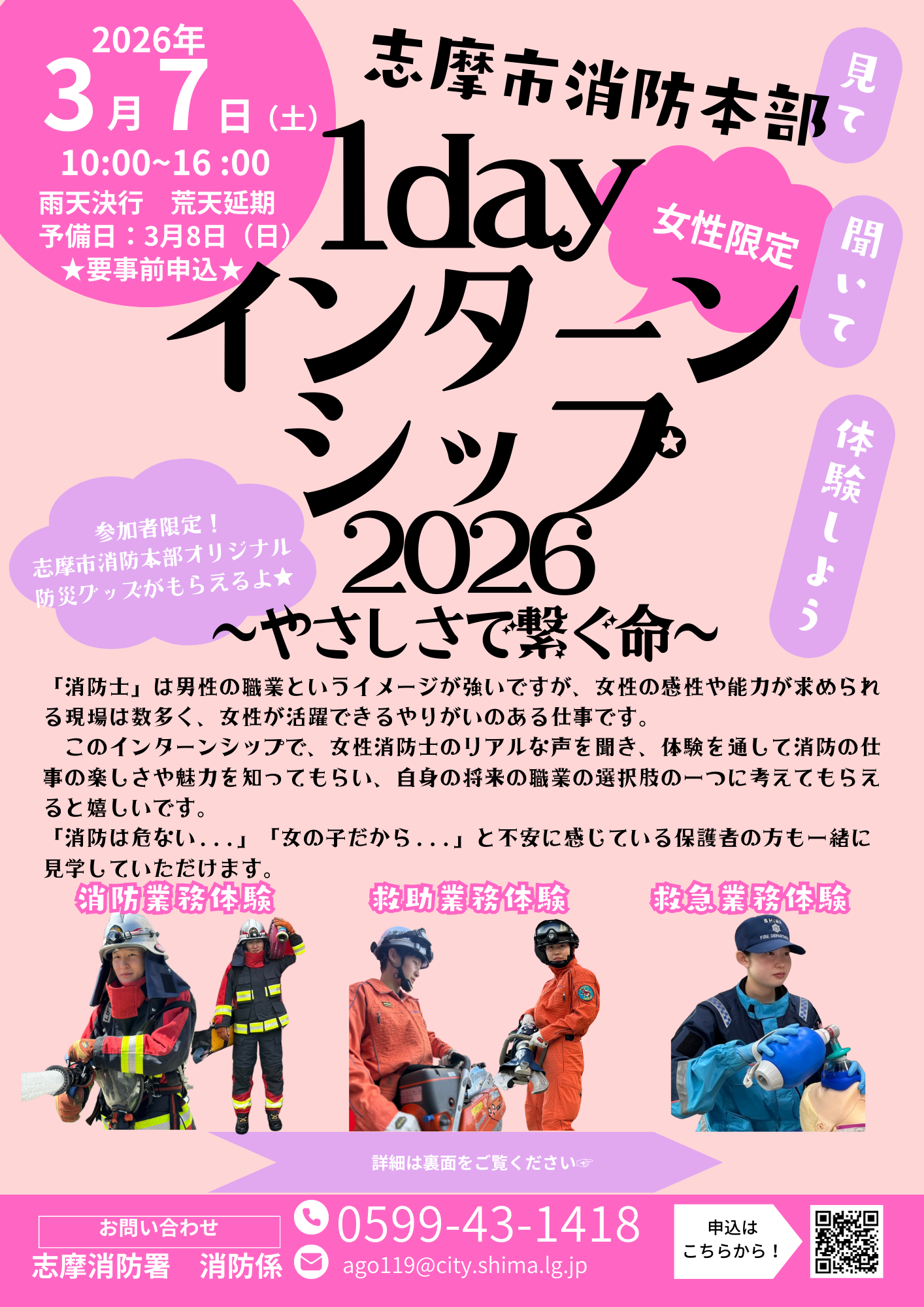 令和8年3月7日開催!!【女性限定】志摩市消防本部 1 day インターンシップ2026~やさしさで繋げる命~