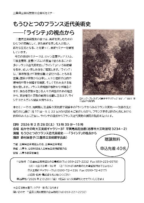 2月28日(土曜日)は、3階 平賀亀祐記念館において三重県立美術館 美術セミナーを開催します。